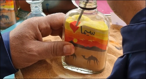 Sand Art in the Bottle in Aqaba, Jordan. Watch a skilled Joranian craftsman create sand art in a bottle!