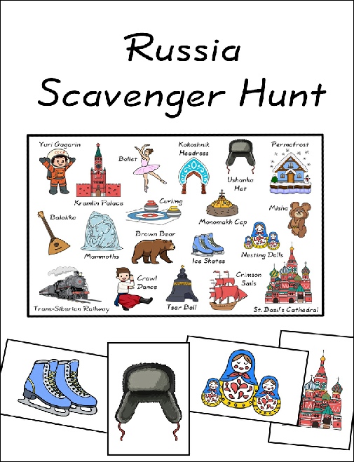 Russia Scavenger Hunt. We always like to do a scavenger hunt when learning about a new country. This is the scavenger hunt we put together for the country of Russia.