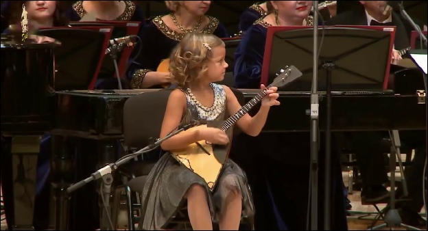 Anastasia Tyurina (7 years) "Valenki" Balalika. Seven year old Anastasia performs on the Balalika, accompanied by the National Academic Orchestra, in Russia.